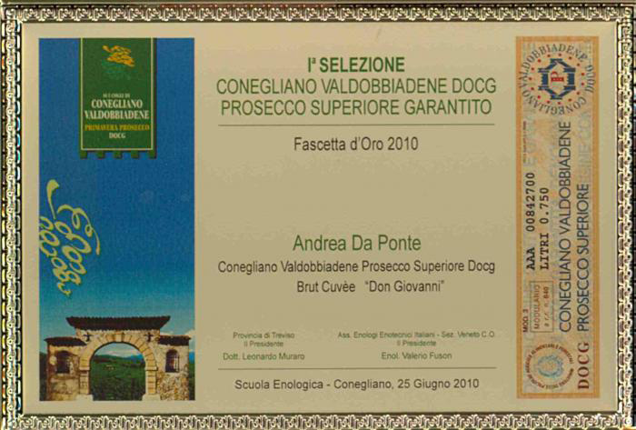 Prosecco Don Giovanni BrutVino Prosecco Spumante Superiore DOCG Millesimato.